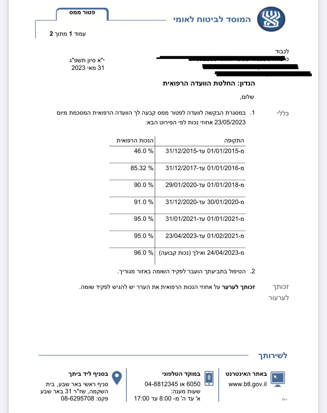 ליווי בבניית התיק הרפואי, הכנה לוועדות וייצוג מלא עד להשגת דרגת הנכות המתאימה.