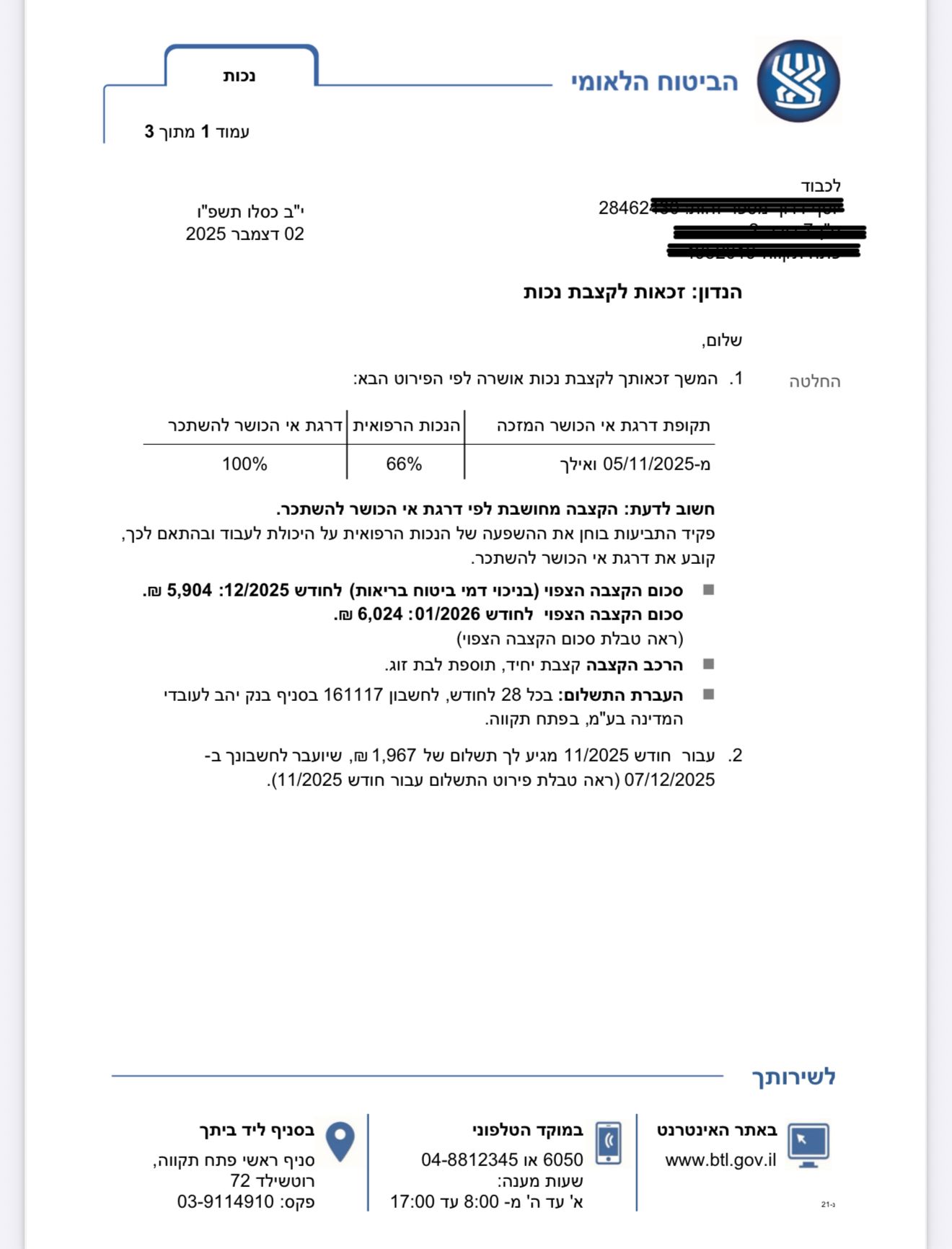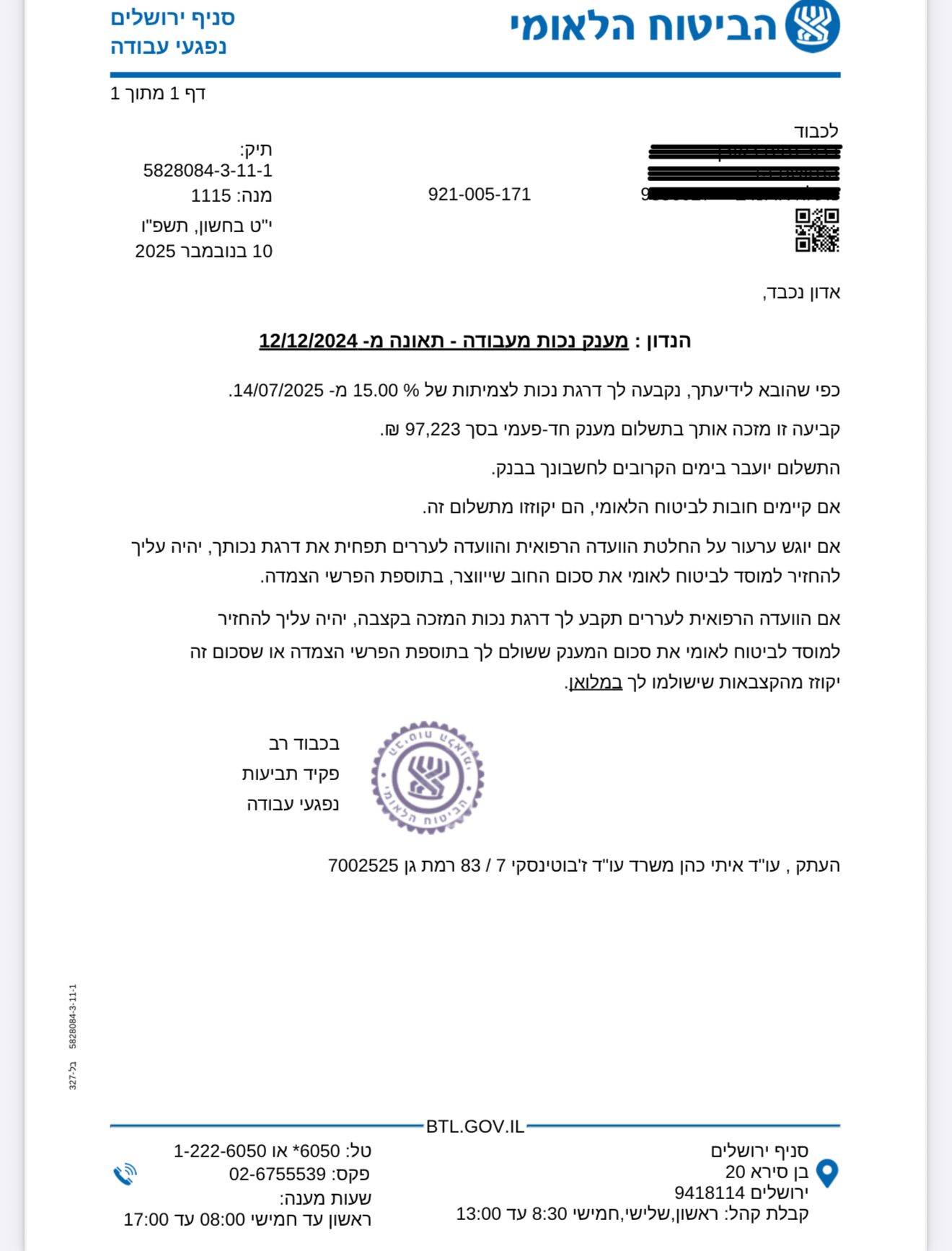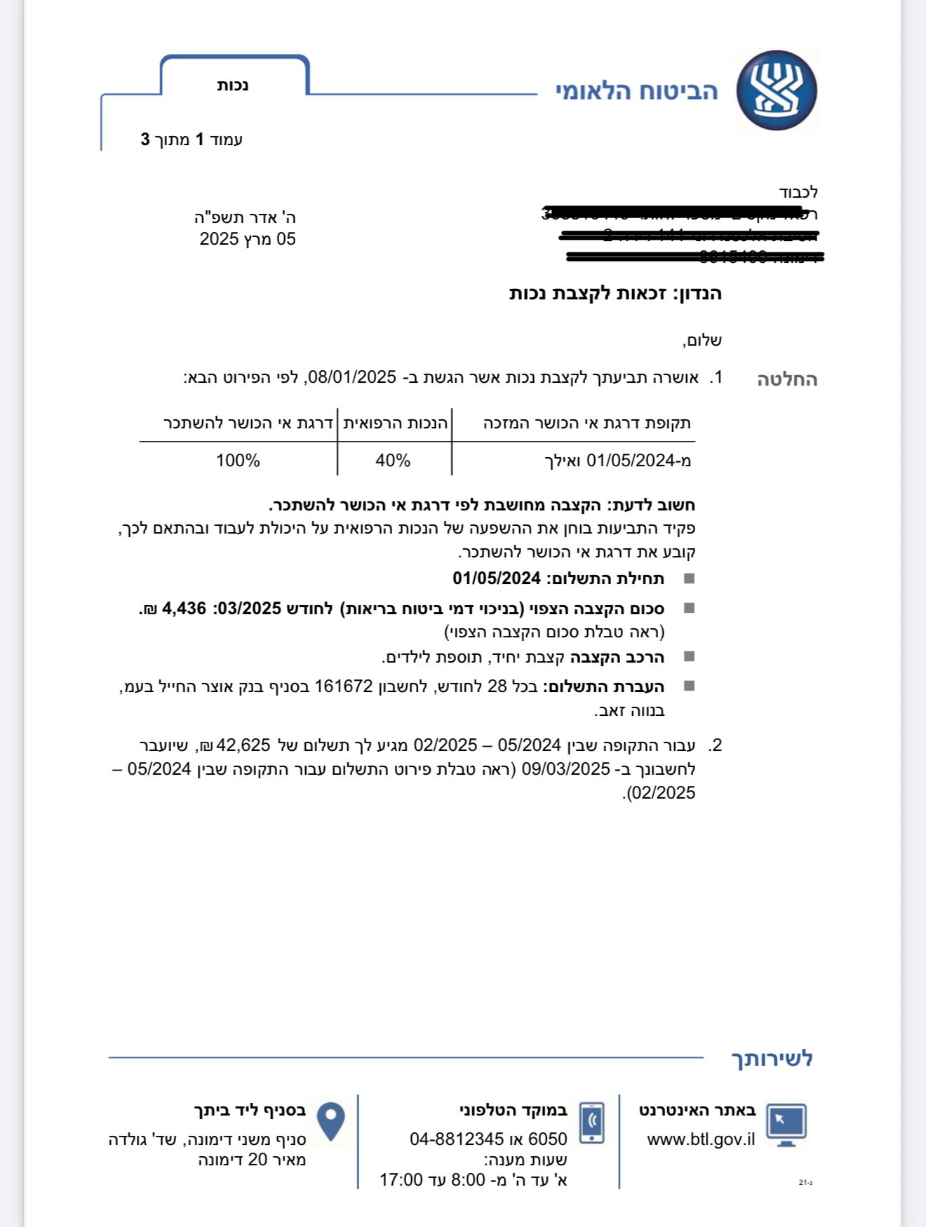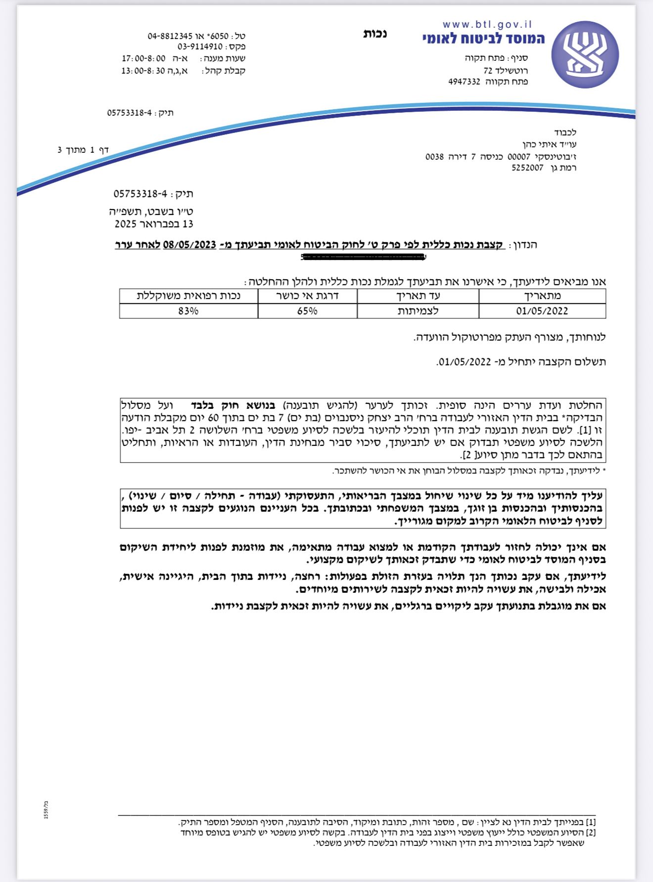 אנו מזמינים אותך לשיחת ייעוץ ראשונית ללא עלות וללא התחייבות, במהלכה נבחן את זכאותך ונכוון אותך כיצד לפעול להשגת מלוא הזכויות המגיעות לך.